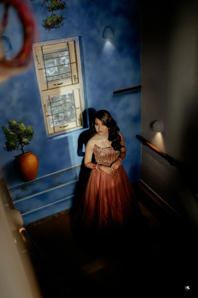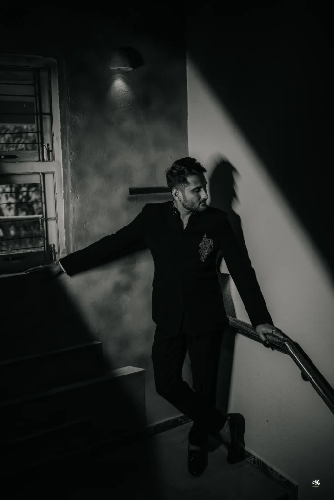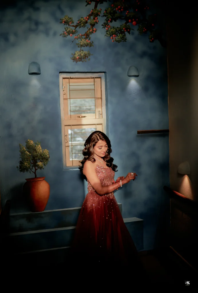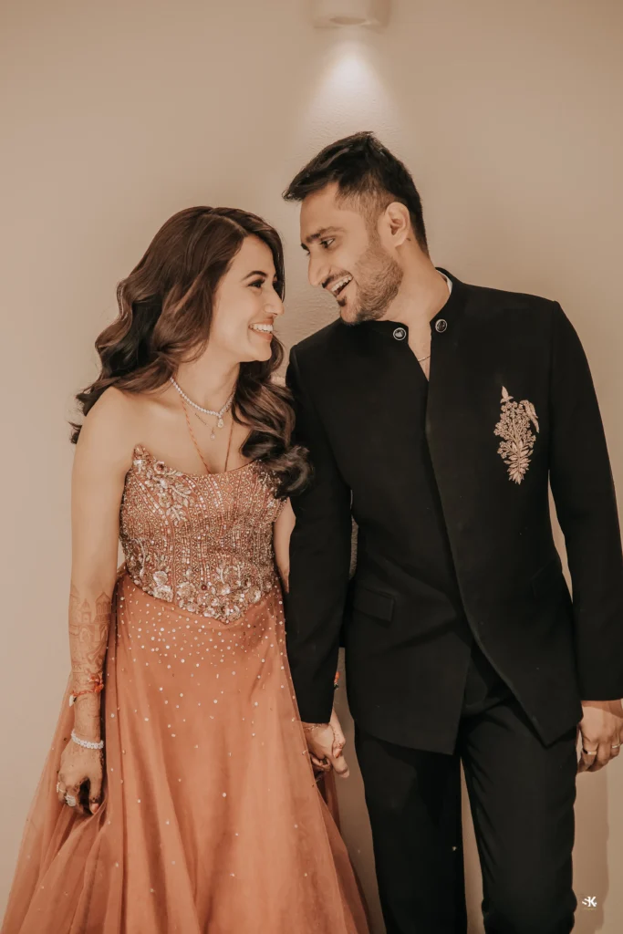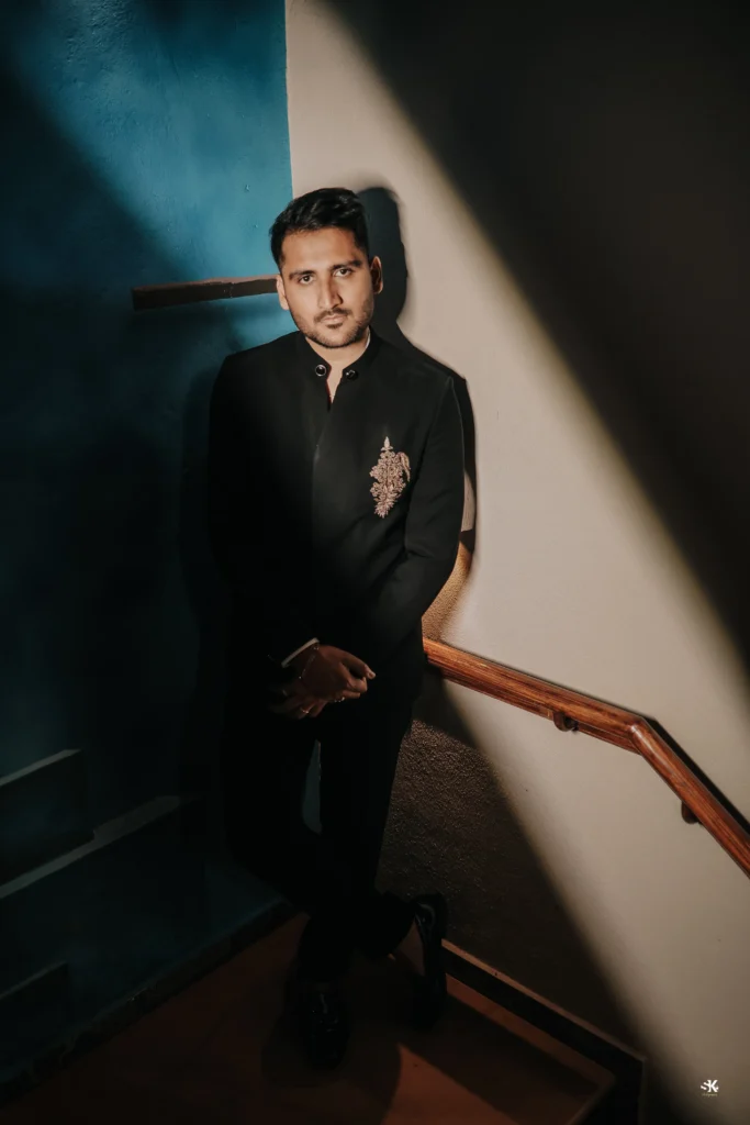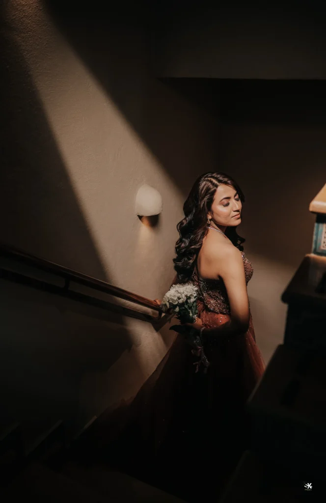 A timeless portrait of elegance and celebration. Set against a lush floral backdrop with soft cascading greens, this image captures the couple in a moment of quiet confidence and togetherness. The graceful detailing of the attire, gentle expressions, and cinematic lighting are complemented by a subtle mist effect, adding depth and a dreamlike atmosphere. Shot with a focus on balance, texture, and emotion, this frame reflects my signature approach—elevated storytelling through refined composition and natural expressions.